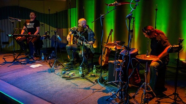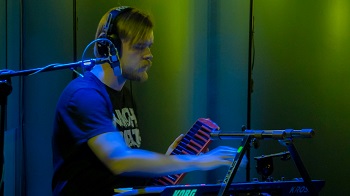 Adam Meryk grający na instrumentach klawiszowych, melodyce i wzbogacający brzmienie elektroniką oraz